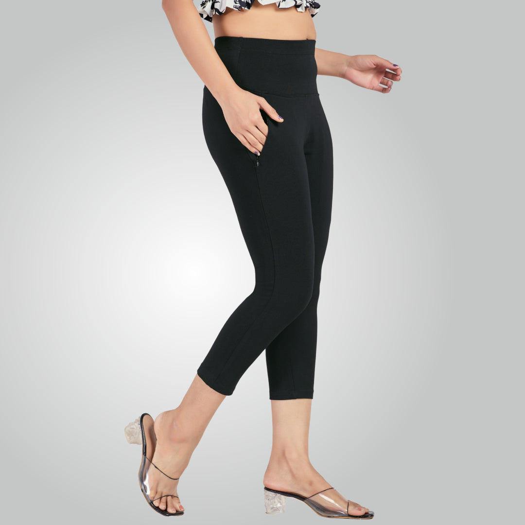 Black High Waist All Day Cotton Lycra Capris