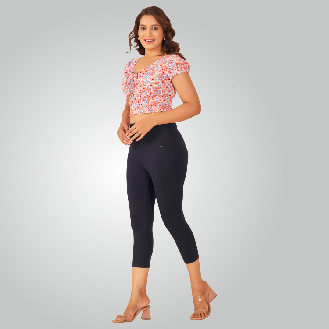 Denim Blue High Waist All Day Cotton Lycra Capris