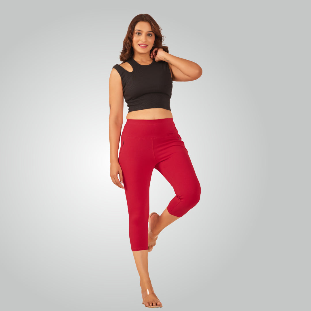 Flamingo Pink High Waist All Day Cotton Lycra Capris