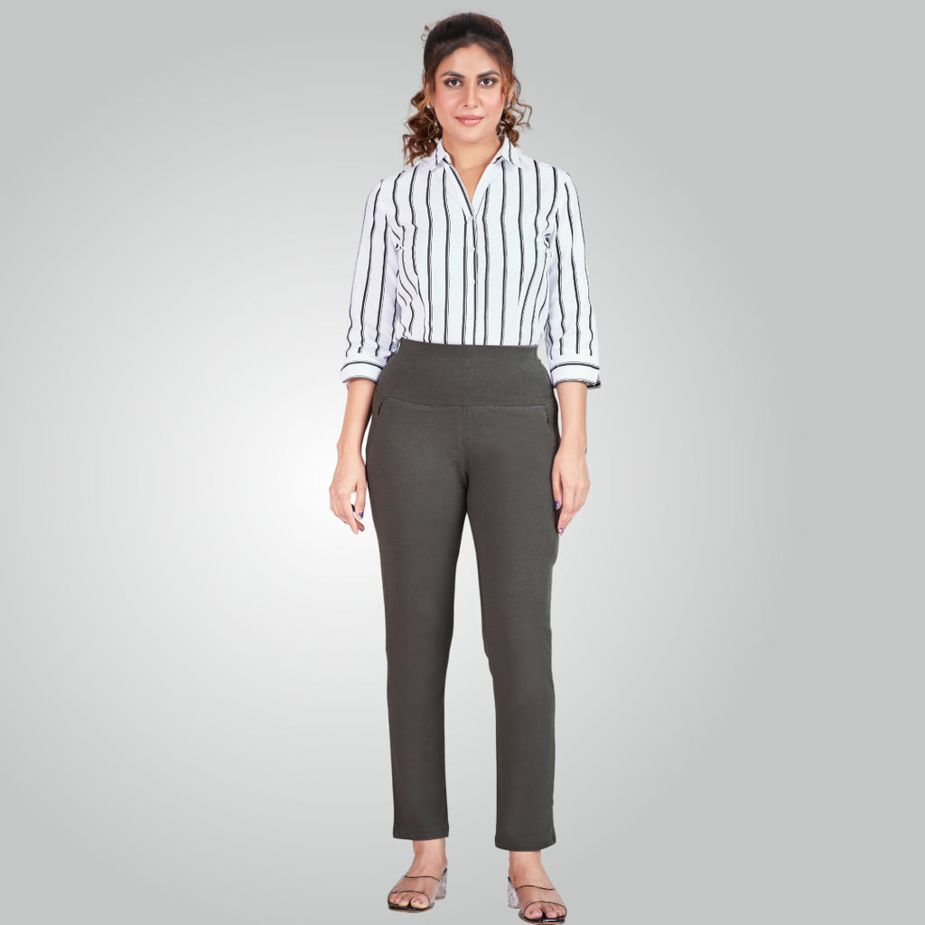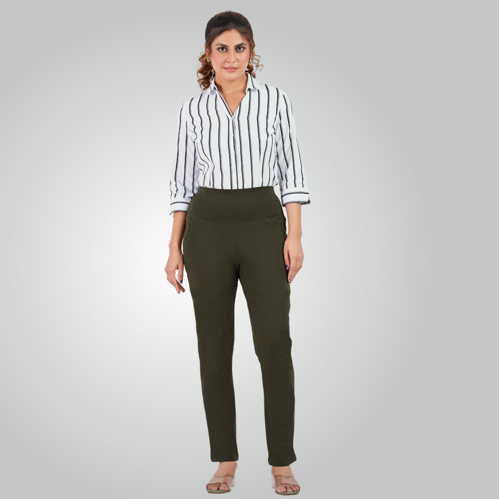 Olive Green High Waist All Day Cotton Lycra Pant