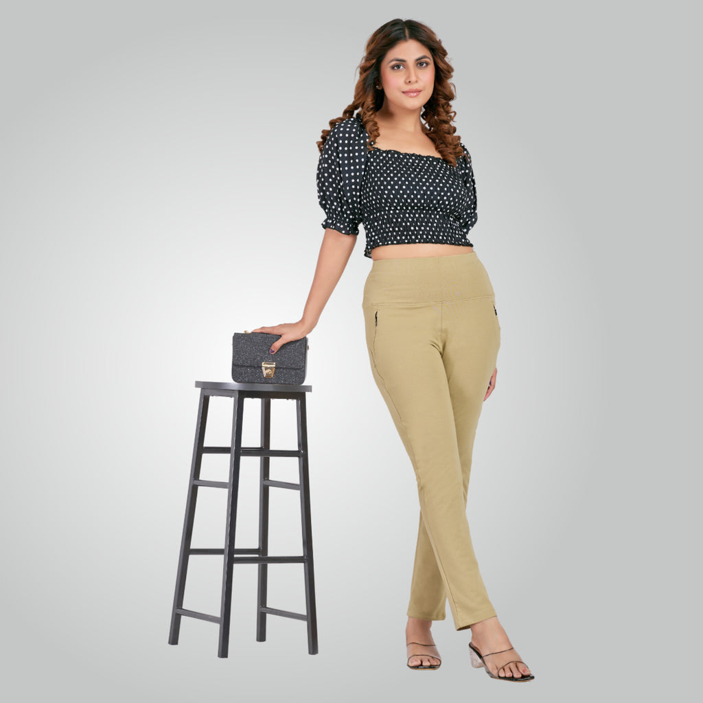 Beige High Waist All Day Cotton Lycra Pant
