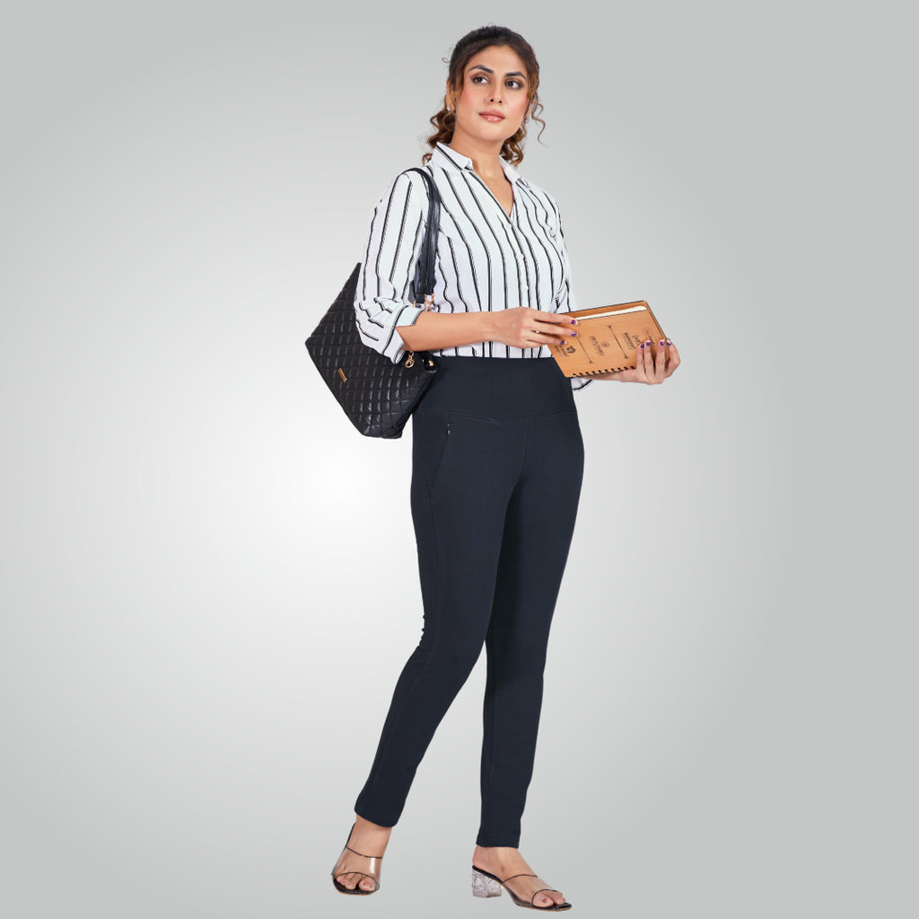 Navy Blue High Waist All Day Cotton Lycra Pant
