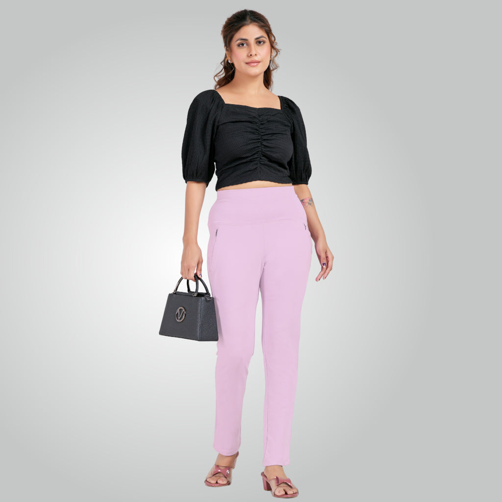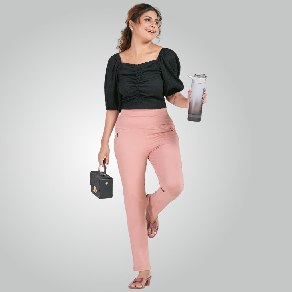 Flamingo Pink High Waist All Day Cotton Lycra Pant
