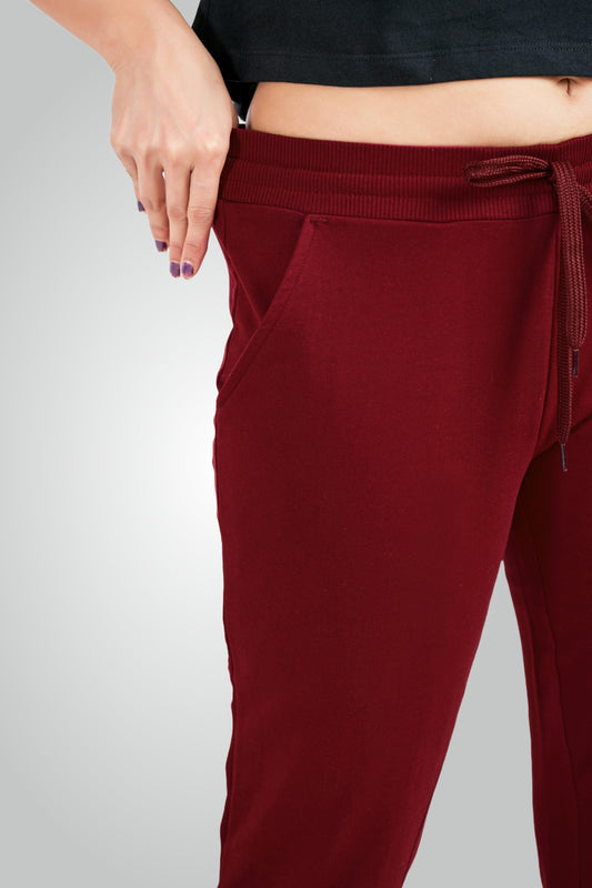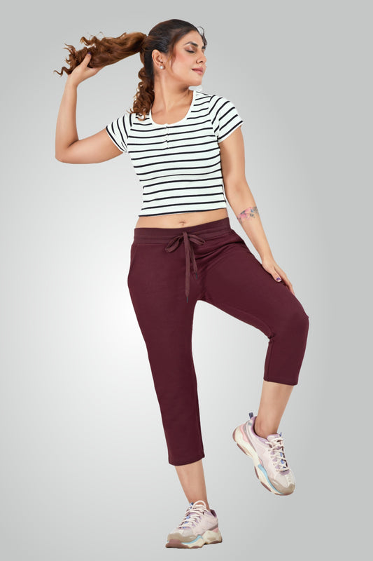 Maroon Combed Cotton Lounge Capri For Women