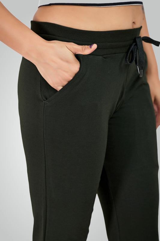 Olive Green Combed Cotton Lounge Capri For Women
