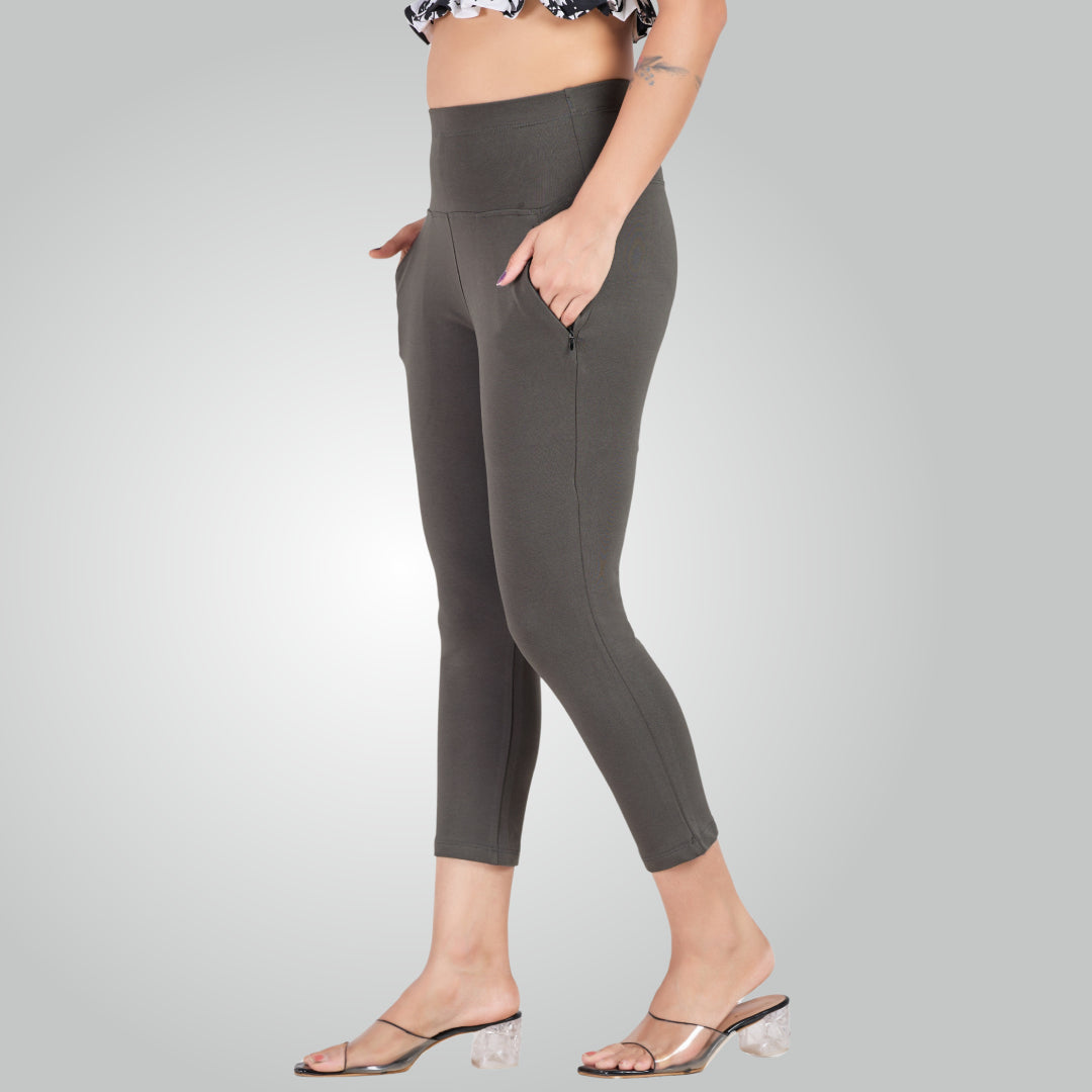 Dark Grey High Waist All Day Cotton Lycra Capris